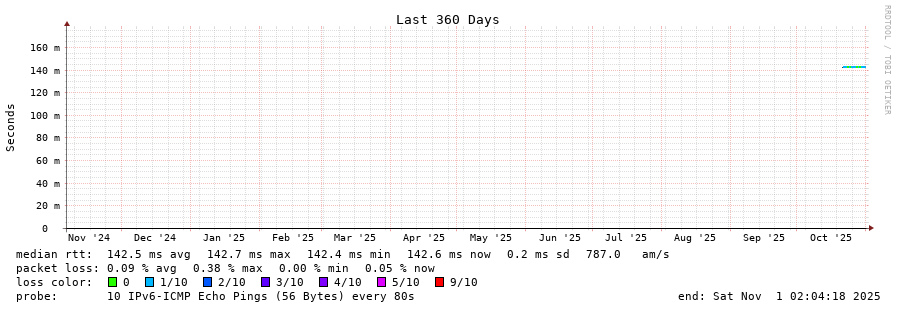 traceroute to 2a0b:2f00:0:234::151 (2a0b:2f00:0:234::151), 30 hops max, 80 byte packets  -  Generated at 2025-10-31 14:45:01