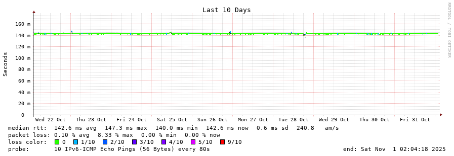 10 > 2001:7f8:64:225:0:4:8112:1                    (2001:7f8:64:225:0:4:8112:1) [AS39107]  144.010ms  143.647ms  143.532ms