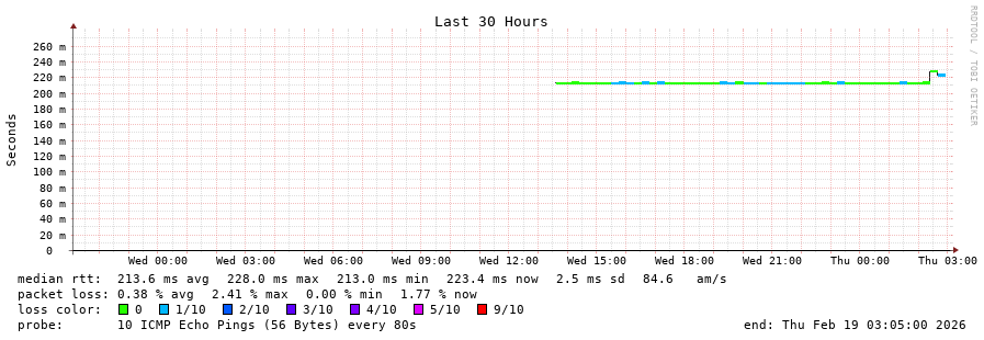 traceroute to 175.111.178.107 (175.111.178.107), 30 hops max, 60 byte packets - Generated at 2026-02-18 19:30:01