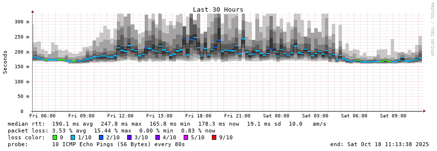 traceroute to 190.104.210.9 (190.104.210.9), 30 hops max, 60 byte packets - Generated at 2025-10-18 03:45:01