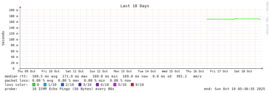 9 > 195.22.220.127 (195.22.220.127) [AS6762] 169.344ms 169.230ms 169.330ms