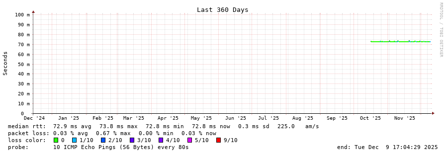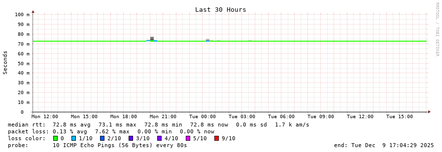 traceroute to 38.224.72.138 (38.224.72.138), 30 hops max, 60 byte packets - Generated at 2025-12-07 02:30:01 3 > 4 > 5 > 6 > 7 > 38.224.72.138 (38.224.72.138) [AS27882] 72.763ms 72.848ms 72.711ms