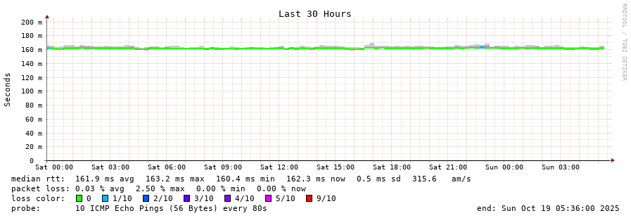 traceroute to 181.192.36.164 (181.192.36.164), 30 hops max, 60 byte packets - Generated at 2025-10-18 07:30:02